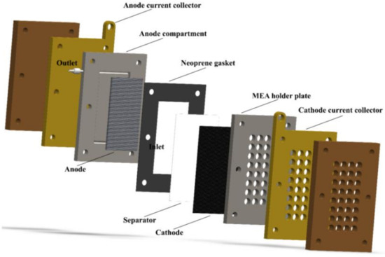 - You, J.; Preen, R.J.; Bull, L.; Greenman, J.; Ieropoulos, I. 3D printed components of microbial fuel cells: Towards monolithic microbial fuel cell fabrication using additive layer manufacturing. Sustain. Energy Technol. Assess. 2017, 19, 94–101. [Google Scholar] [CrossRef]