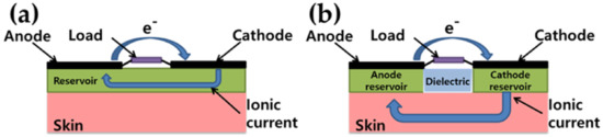 - Bandodkar, A.J.; You, J.-M.; Kim, N.-H.; Gu, Y.; Kumar, R.; Mohan, A.V.; Kurniawan, J.; Imani, S.; Nakagawa, T.; Parish, B. Soft, stretchable, high power density electronic skin-based biofuel cells for scavenging energy from human sweat. Energy Environ. Sci. 2017, 10, 1581–1589. [Google Scholar] [CrossRef]