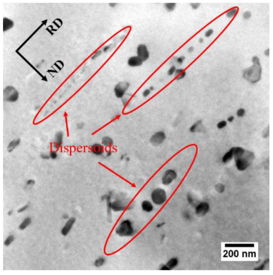 Figure 15. The distribution of dispersoids observed using TEM after solution treatment.