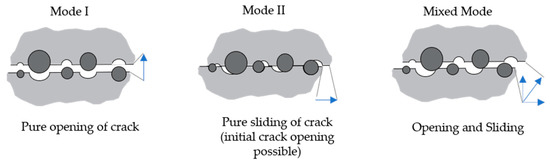 The structural behaviour of plain concrete is significantly influenced by its quasi-brittle nature and the localisation and propagation of cracks. Concrete cracking is usually assumed to occur when the main tensile stress in the continuum exceeds the uniaxial or multiaxial tensile strength of the material. After initial concrete cracking, the kinematic behaviour of the crack faces can be defined by different modes, which are illustrated in Figure 1, namely mode I, often denoted as the opening or tensile mode, and mode II, which is denoted as sliding or shear mode. Furthermore, mixed mode is shown describing a kinematic process with co-occurring mode I and mode II displacements. Most fracture problems in concrete and reinforced concrete structures are of a mixed mode nature, involving perpendicular and parallel movements of the crack surfaces at the same time. Typical examples are shear and punching shear behaviour of reinforced concrete (RC) members. Despite its striking practical relevance, modelling shear and mixed-mode fracture is not yet well developed for cementitious materials. The following section gives a review of current modelling approaches to analyse the research significance.