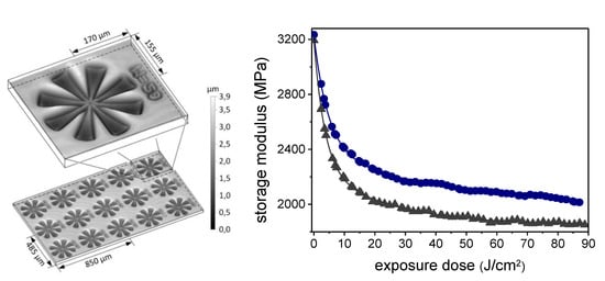 - Giebler, M.; Radl, S.; Ules, T.; Griesser, T.; Schlögl, S. Photopatternable Epoxy-Based Thermosets. Materials 2019, 12, 2350. [Google Scholar] [CrossRef] [PubMed]