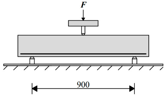 Reinforced concrete beam without transverse reinforcement—scheme of the test.