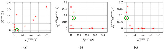 - a mesoscale statistical inverse problem formulated as a multi-objective optimization problem that consists in calculating the optimal value of hyperparameter in that minimizes the two mesoscopic numerical indicators and as well as the multiscale numerical indicator simultaneously, that iswhere is the (vector-valued) multi-objective cost function defined for any vector by