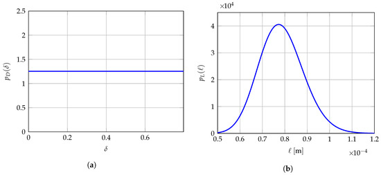 Hence, optimal value corresponds to the most probable value of random vector according to the identified probability distribution represented by its probability density function parameterized by . Note that the averaging approach presented in Reference [140] is a particular case of the MLE method presented in this section if the prior stochastic models of D, and are uniform random variables. It is the reason why a better robust identification is expected since the prior stochastic model of has been improved in this work. In the present work, since D is modeled as a uniform random variable on , the optimal value of is simply obtained by averaging the Q independent realizations of D. A more advanced prior stochastic model for D could have been considered, for instance by adding as available information that its mean value is given and its values are unlikely near zero, thus leading to a unimodal probability density function with support and with a higher parameterization than the simple uniform probability density function considered here.