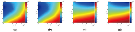 In the present work, a dedicated numerical indicator has been set up specifically for each component of hyperparameter , allowing for the use of a simpler and more efficient multi-objective optimization algorithm, namely a fixed-point iterative algorithm. Starting from an ad hoc initial guess, it consists in sequentially minimizing , and respectively with respect to , ℓ and in their sets of admissible values that are such that belongs to . The iterative process is stopped when the residual norm between two iterates becomes lower than a user-specified prescribed tolerance for each of the three single-objective optimization problems. Numerical results have shown that, for the problem under consideration, such a fixed-point iterative algorithm can achieve the same precision as the genetic algorithm in terms of convergence but with a lower overall computational cost (see the numerical examples in Section 10 and Section 11). The main drawback of such a numerical optimization algorithm lies in the choice of the initial values used to start the algorithm that may be critical for the localization of the final global convergence region. Besides, note that the fixed-point iterative method introduced in this work could a priori be applied to the original formulation proposed in Reference [140], but it would lead to minimize the objective function with respect to and ℓ simultaneously given the other hyperparameters . Although it is possible, the problem is that is very sensitive to but less sensitive with respect to ℓ, since it has been tailored to perform the identification of the optimal value of and not the one of ℓ. Consequently, using such a fixed-point iterative strategy would yield uncertainties on the identified value of ℓ. It is the reason why the additional objective function has been introduced and for which the sensitivity is of first order with respect to ℓ and of second order with respect to .