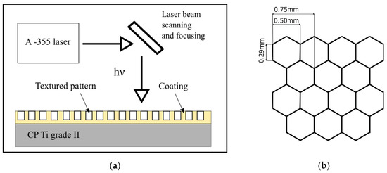 Schematic diagram of (a) laser micromachining system and (b) the honeycomb-like pattern of laser texturing.