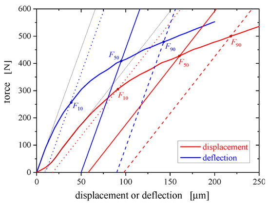In conclusion, the present deflection-based approach leads to give rise to more robust yield stress prediction as compared to the displacement-based approach, because the basic performance of the two predictive schemes is about the same in terms of the established error percentages, whereas experimental practice clearly points at significant uncertainties associated with the correction of the frame compliance. As the deflection measurement is not affected by parasitic compliance, it constitutes the method of choice.