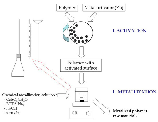 Scheme of obtaining metalized polymeric raw materials.