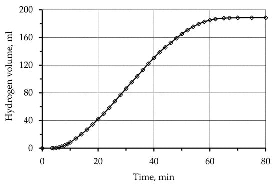 Kinetics of hydrogen release during copper plating of the activated surface of polypropylene waste. Concentration (mmol/L): CuSO4-60; EDTA-Na2–67; NaOH-375; formaldehyde 366.