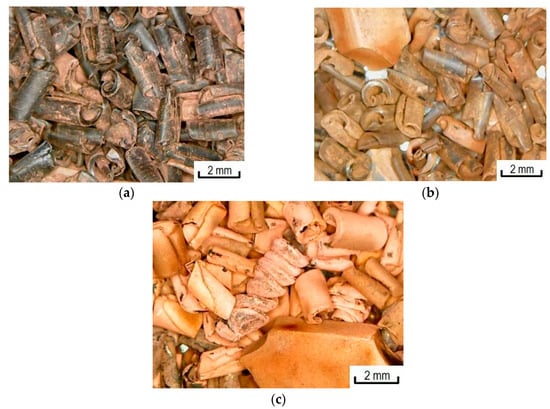 Photomicrographs of polypropylene waste. Copper content: (a) 5 wt.%; (b) 15 wt.%; (c) 20 wt.%.