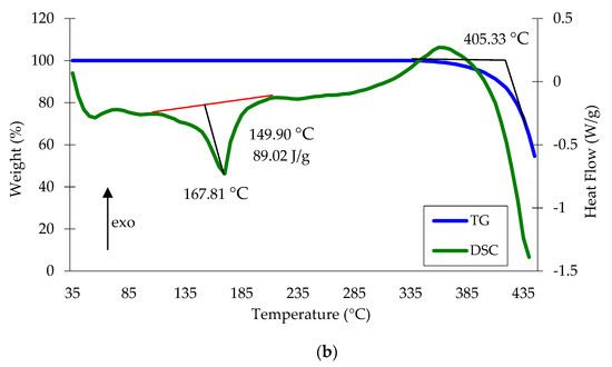 The study of raw materials (polypropylene waste) and the obtained metalized polypropylene waste by DSC showed a certain effect of metal on the magnitude of thermal effects (Figure 18).