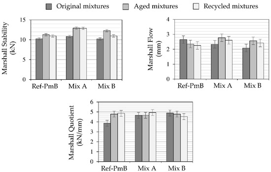 Marshall Quotient (MQ), the ratio of stability to flow, is recognized as an indicator of the resistance of the material to shear stress and is also related to the mixture’s resistance to permanent deformation. High MQ values are associated to high stiffness and better resistance to creep deformation of the asphalt mixture [36].