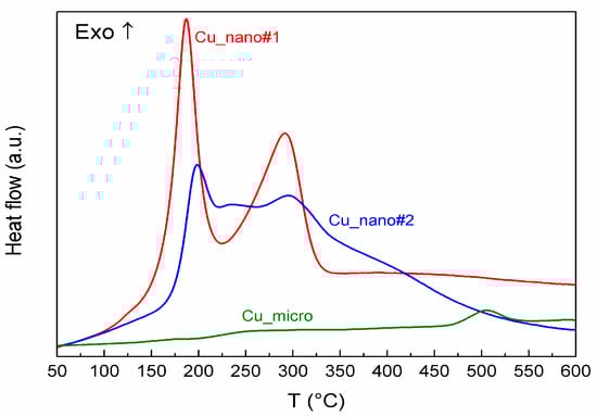 DSC of Cu-nano#1, Cu-nano#2 and Cu-micro.