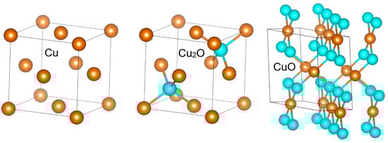 Comparison of Cu, Cu2O and CuO crystal structures.