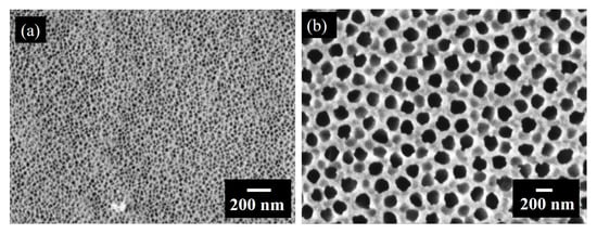 Membrane technology has become a promising industrial alternative compared with traditional treatment techniques, such as distillation, absorption, adsorption, extraction, activated sludge and trickling filters. The separation mechanism is principally based on the size exclusion of matter, i.e., substances with sizes larger than the pores of the membranes are rejected. In order to achieve a high selectivity, the pores in a membrane need to be smaller than the particles in the mixture that we want to separate. The chemical and thermal stabilities are very important to consider when selecting the materials for membranes. For example, polymeric membranes cannot withstand many organic solvents or high-temperature conditions. In these hard conditions, inorganic membranes are usually more suitable. Alumina is a very good material for porous membranes because it is chemically stable, semitransparent, insoluble, inert, and biocompatible [,,]. One of the very attractive applications of nanoporous alumina membranes is their incorporation into a wide variety of sensors [,,,], for filtration purposes [,,,] and water treatment [,,,,,].