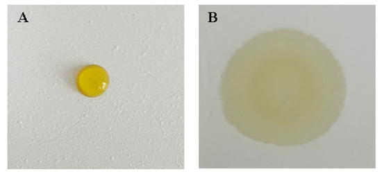 Serum floats on A cannot diffuse to the lower reagent sheet. While serum drop on B diffused to reagent sheet quickly. This is because CA is hydrophobic. When the surface of BaSO4 microspheres is wrapped with CA, the bifunctional sheet is hydrophobic, so it is difficult for the serum sample to wet with the hydrophobic bifunctional BaSO4 sheet. Surfactant can efficiently change the degree of infiltration of the droplet on the solid surface, so the serum can easily wet the bifunctional sheet and then diffuse to the next sheet.