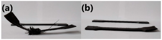 Unsuccessful and successful 3D-printed specimens of (a) POM/2.5EVA and (b) POM/5.0EVA.