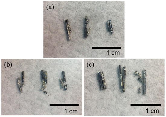 The main reason why the rate of degradation of the Mg clips must be controlled is to minimize the effects of the release of large amounts of hydrogen [37]. Negative effects due to the release of hydrogen were not observed during our experiments. This may be because the Mg clips were small and the hydrogen released by the clips was simply consumed by the animals’ metabolic reactions. Therefore, applications involving a large number of Mg clips must still be investigated in the future. A closed incisional wound takes a week to heal; thus, the clip device must be able to keep the wound closed during this time [2]. In Figure 8d–f, it is clearly shown that the various Mg clips were able to maintain closure of the wound for three weeks.
