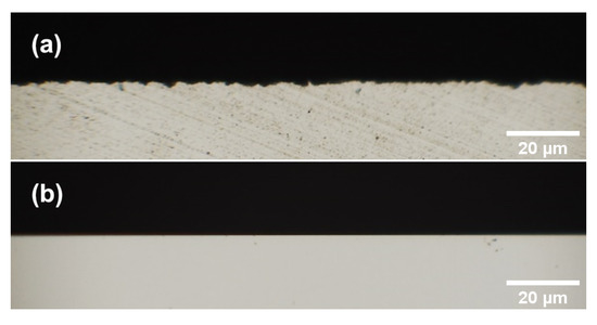 Figure 6. Optical images of the cutting edges for the roughness evaluation. The images are taken from the direction of the rake face. View field for all images is 160 μm. (a)SC-tool. (b) MD-tool.
