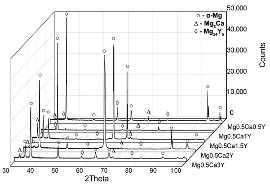 XRD analysis of Mg-0.5Ca-xY experimental alloys [57].