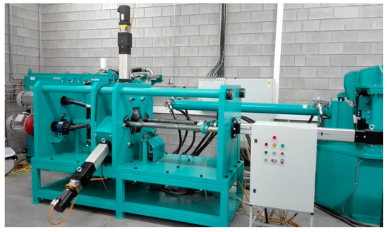 Due to a lack of rolling stands, the first tests of skew rolling were only based on numerical simulations. The simulations showed that the method can be used for producing both solid and hollow railway axles [13,14,15]. In [16], it was shown that skew rolling requires relatively low loads and torques. Moreover, a great advantage of this process is the possibility of producing parts of different shapes using the same rolls [17,18]. These days rolling test stands are constructed that allow researchers to verify theoretical solutions. One of such rolling mills is available at the Lublin University of Technology and was used for the study described in this paper.