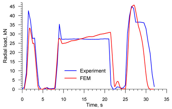 Comparison of the FEM and experimental radial loads in skew rolling railway axles in a 3-roll mill (1:5 scale).