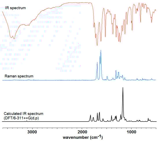 An infrared (IR) and Raman study of the samples in solid state was conducted: the Fourier transform infrared (FT-IR) spectra for the samples in KBr matrix pellets were recorded with the use of Alfa (Bruker, Billerica, MA, USA) spectrometer in the range of 400–4000 cm−1. FT-Raman spectra were recorded with a MultiRam (Bruker) spectrometer in the same range of cm−1.
