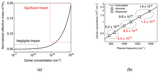 - Ibáñez, J.; Tarhan, E.; Ramdas, A.K.; Hernández, S.; Cuscó, R.; Artús, L.; Melloch, M.R.; Hopkinson, M. Direct observation of LO phonon-plasmon coupled modes in the infrared transmission spectra of n-GaAs and n-InxGa1−xAs epilayers. Phys. Rev. B 2004, 69, 075314. [Google Scholar] [CrossRef]
