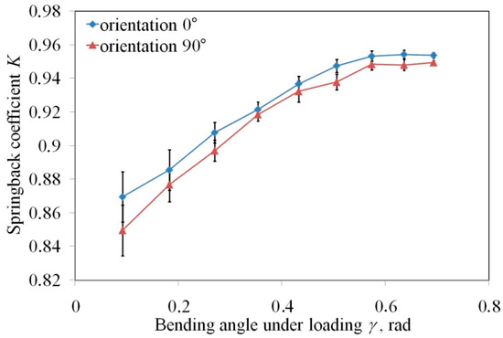 - An increase in the bend angle γl leads to a nonlinear increase in the springback coefficient Ks. The higher the bend angle γl, the smaller the difference between the springback coefficients Ks measured for both sample orientations.