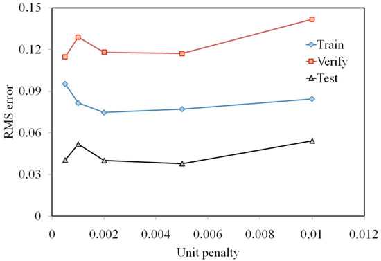 The effect of the unit penalty of the RMS error.