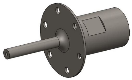 The displacement node located at the middle of the horn, where a flange plate is designed to install the horn to the machine tool. The ladder horn is shown in Figure 2.
