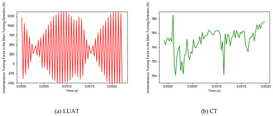 Instantaneous cutting force in main turning direction. (a) LUAT; (b) CT.