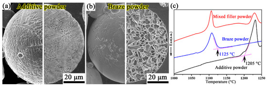 - Corbin, S.F.; Murray, D.C.; Bouthillier, A. Analysis of Diffusional Solidification in a Wide-Gap Brazing Powder Mixture Using Differential Scanning Calorimetry. Met. Mater. Trans. A 2016, 47, 6339–6352. [Google Scholar] [CrossRef]