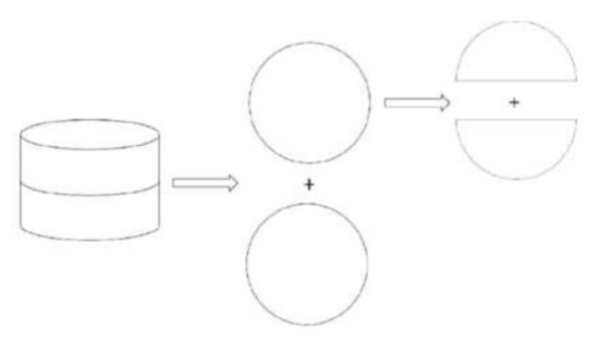 - The test samples was cut into four half cylinders. The size of the semi-circular sample was φ152.4 mm × 50 mm. Each semi-circular sample was cut at the midpoint of its diameter in a radial direction with a length of 15 ± 2.5 mm and a width of 2.5 ± 1 mm. Schematic diagram of sample cutting and finished samples are shown in Figure 1 and Figure 2.