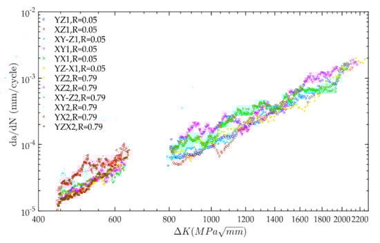 - ASTM E647-15, Standard Test Method for Measurement of Fatigue Crack Growth Rates; ASTM International: West Conshohocken, PA, USA, 2015.