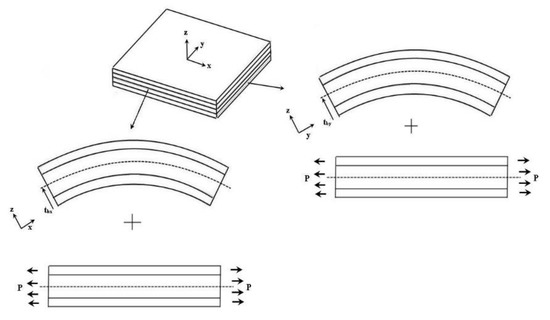 where i and N denote the ith layer and number of layers in the composite laminate, respectively; represent the stiffness matrix of the ith layer; are the z coordinates of the top and bottom surfaces of the ith layer along the thickness direction, respectively; and for the cross-ply composite laminate.