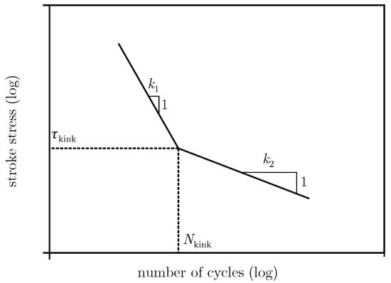 However, there is also no experimental evidence available that supports the assumption of a pronounced fatigue strength beyond 10 cycles. Therefore, in this work the more conservative approach of a bilinear fatigue curve is used. The kinking of the fatigue curve occurs at different stroke stresses and different numbers of cycles depending on the properties of the batch of springs under investigation as well as the testing setup. The model used incorporates this through a variable kink point.