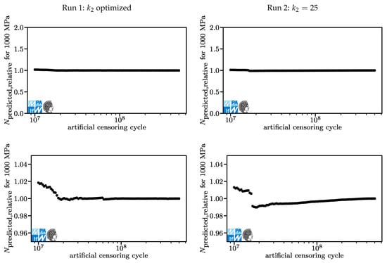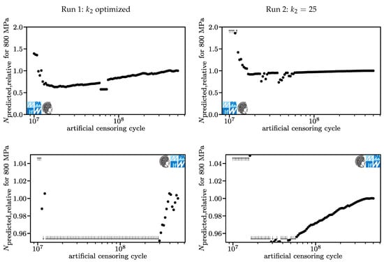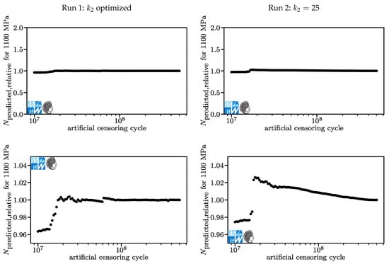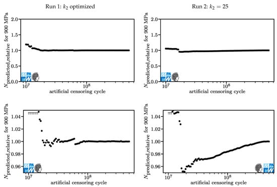 Figure 10, the relative lifetime predictions for a stroke stress of 900 MPa are displayed. For artificial censoring cycles over 2·10