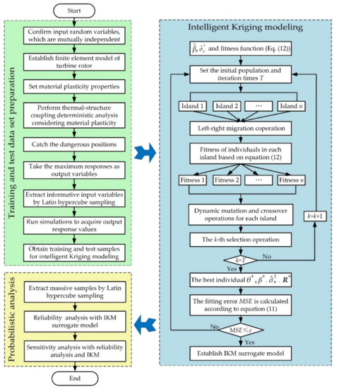Finally, considering the established IKM surrogate model and a large number of sample data, the probabilistic analysis is completed. The flow chart of probabilistic analysis with IKM is shown in Figure 4.