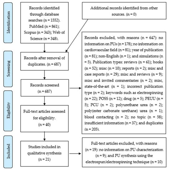 Chicago/Turabian StyleNavas-Gómez, Kelly, and Manuel F. Valero. 2020. "Why Polyurethanes Have Been Used in the Manufacture and Design of Cardiovascular Devices: A Systematic Review" Materials 13, no. 15: 3250. https://doi.org/10.3390/ma13153250