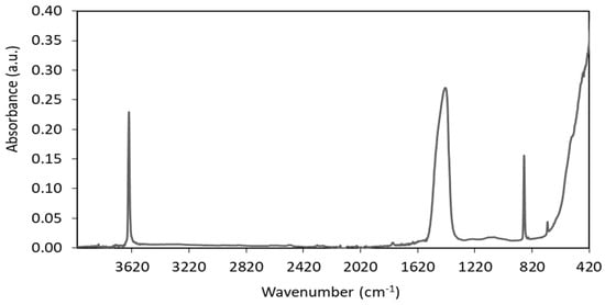 Fourier transform infrared (FTIR) spectroscopy was used to identify impurities present in raw CaO. Measurements were carried out using a FTIR Nicolet 6700 (ThermoFisher Scientific, Waltham, MA, USA) spectrophotometer. FTIR spectrum was obtained in the range of wavenumber from 4000 to 400 cm-1 during 128 scans. Attenuated Total Reflectance (ATR) technique equipped with a single reflection diamond ATR crystal on ZnSe plate was used for all measurements.
