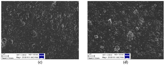 The dispersion of the CaO/ALA and silica particles in the EPM matrix was examined using a LEO 1530 SEM (Zeiss, Oberkochen, Germany) scanning electron microscope. Prior to the measurements, the vulcanizates were immersed in liquid nitrogen for 5 min and broken down. The surfaces of their fractures were coated with carbon and were then examined.