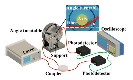 Schematic illustration of angle calibration experiment for the developed POF sensor.