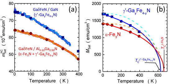 - Bianco, L.D.; Spizzo, F.; Li, T.; Adhikari, R.; Bonanni, A. Influence of Mn co-doping on the magnetic properties of planar arrays of GaxFe4-xN nanocrystals in a GaN matrix. Phys. Chem. Chem. Phys. 2018, 20, 25411. [Google Scholar] [CrossRef]