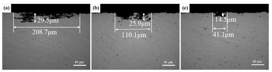 Figure 7 shows metallographic cross-sections (ND–TD) with the maximum corrosion depth and width of three different Zn/Mg ratio alloys after the intergranular corrosion. The corrosion attack would like to develop along grain boundaries. Obviously, 1# alloy was the most susceptible to the corrosion attack. Clear network microstructure could be seen and the maximum corrosion depth and width extended up to 29.5 μm and 208.7 μm, respectively. The corrosion sensitivity of 2# alloy was lower with the maximum depth and width were 25.9 μm and 110.1 μm, respectively. For 3# alloy, the maximum depth and width were 14.5 μm and 41.1 μm, respectively, suggesting that the corrosion degree was greatly relieved with the decrease of the Zn/Mg ratio.