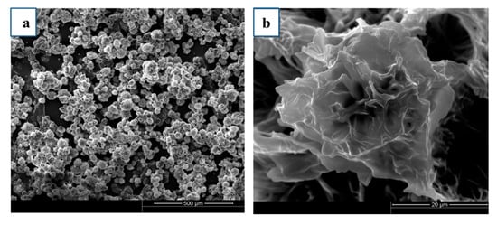 (a) SEM image of the soybean wax coating and (b) its higher magnification image.