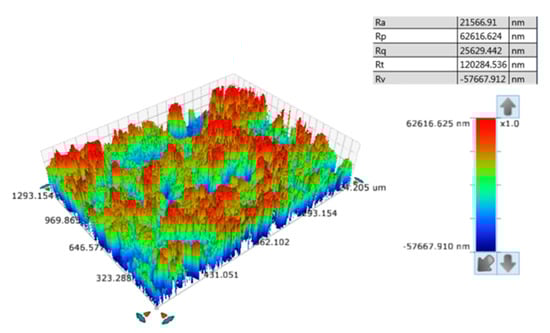 Futhermore, the roughness of the coating was analyzed by white light interferometer at room temperature. As shown in Figure 3, the convex hulls showed micron fluctuation structure. The staggered convex structure and uniform distribution of convex hulls on the surface facilitated its superhydrophobic characteristics.
