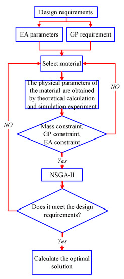 In Figure 2, we optimized the EA parameters and GP (such as material length, cross-sectional area, etc.) of the buffer material according to the requirements of the ML’s buffer EA. Firstly, we will get the EA parameters and GP requirement of the buffer material through theoretical calculation and simulation. If the material parameters meet the material’s mass constraint, the GP constraint and EA constraint. Next, we will take the minimum total mass of the material, the VEA and MEA as the objective function. Finally, the NSGA-II is used to obtain optimization results that meet the design requirements. This optimization method provides a new research direction for the research of the cushioning EA of the ML: the user can calculate the optimal combination of the physical parameters of the buffering materials and their EA changes within the constraints.