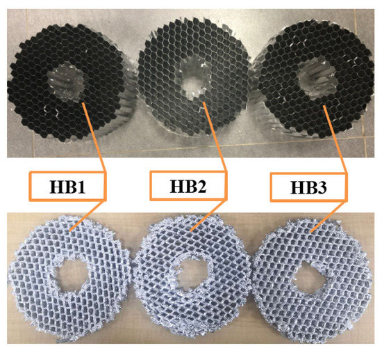 - Khan, M.K.; Baig, S.M.T. Experimental investigation of in-plane and out-of-plane crushing of aluminum honeycomb. Mater. Sci. Eng. 2012, 539, 135–142. [Google Scholar] [CrossRef]