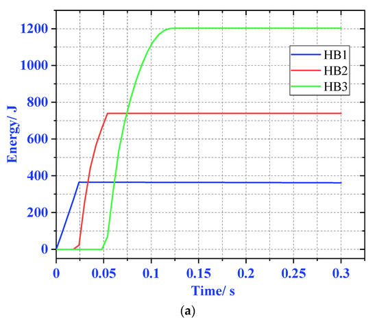 It can be seen from Figure 12, the EA conditions and matching methods of the three materials meet the requirements of the experimental design. After the HB1 buffer EA is completed, HB2 starts to absorb energy, and finally the HB3 material completes the buffer. Meet the design requirements.